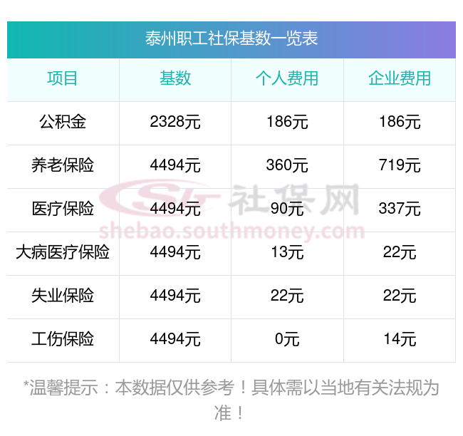 据新社通app显示,泰州社保缴费基数2023-2024年最新消息,泰州职工社保缴费详情如下: