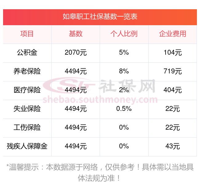一、如皋职工社保缴费基数是多少钱一个月?职工社保缴纳标准