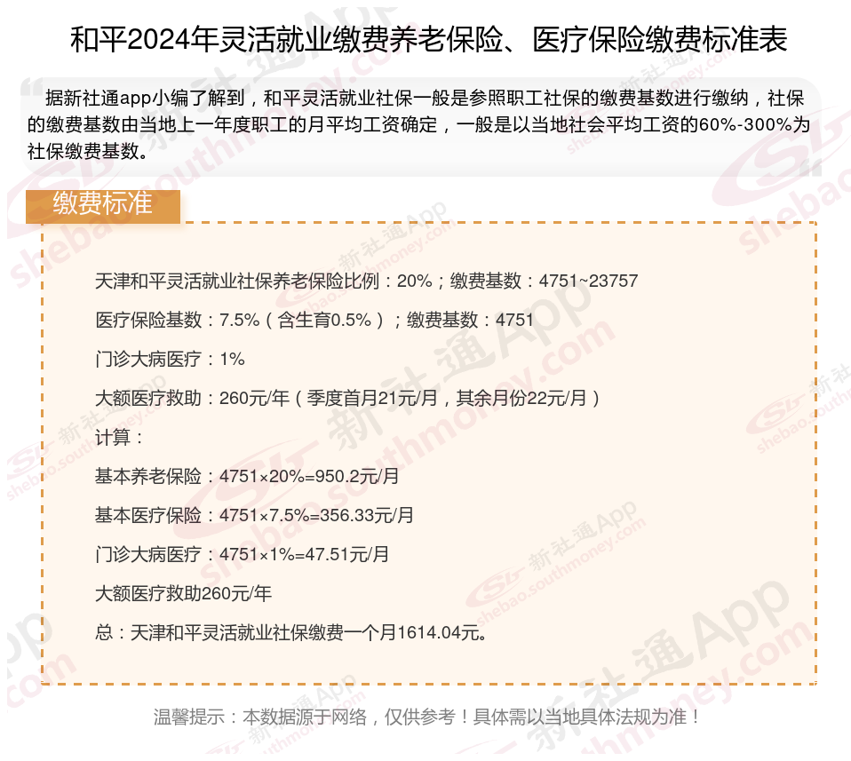 一、2024年和平灵活就业社保缴费标准表 和平灵活就业社保多少钱一个月?