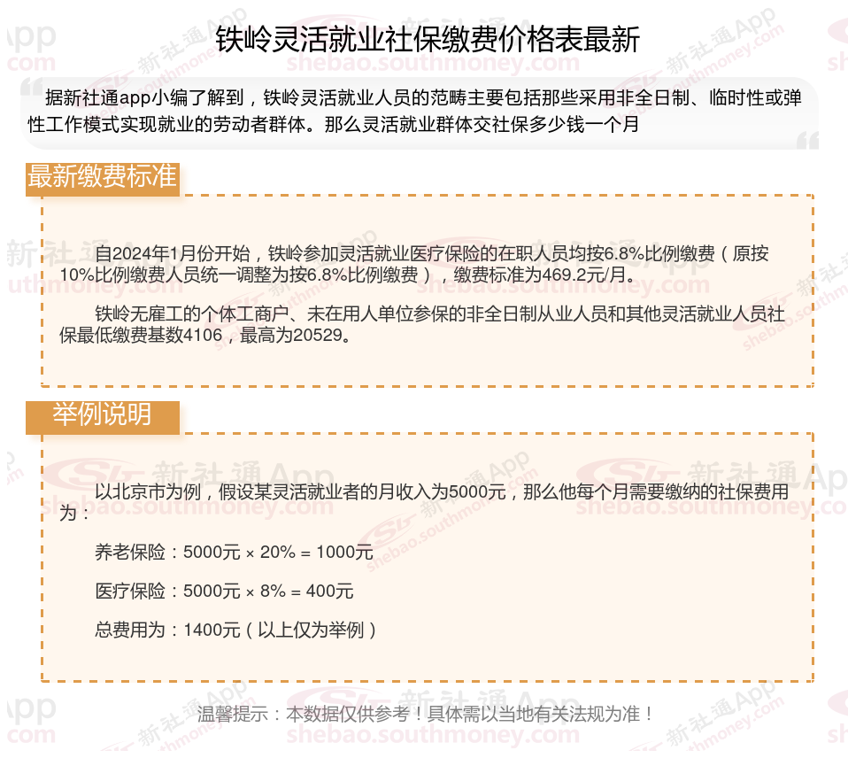 以上就是铁岭灵活就业社保缴费的全部内容,数据及内容供参考!希望对你有帮助,欢迎关注新社通app解锁更多社保专业资讯。