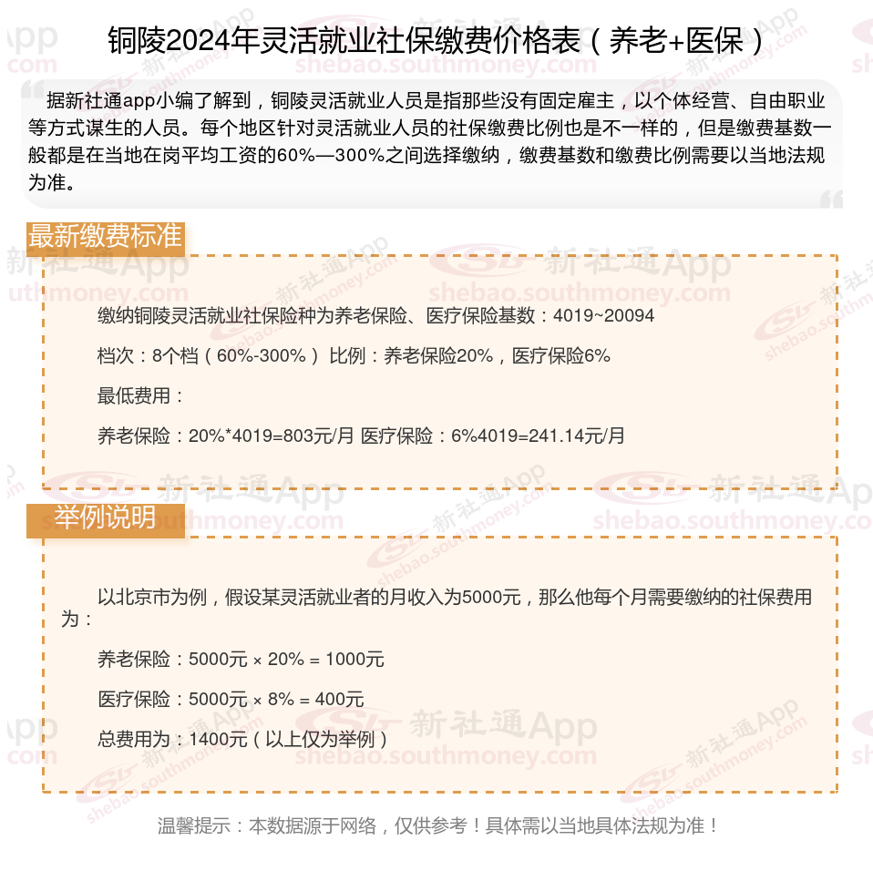 二、铜陵2024年灵活就业社保缴费基数、比例最新消息