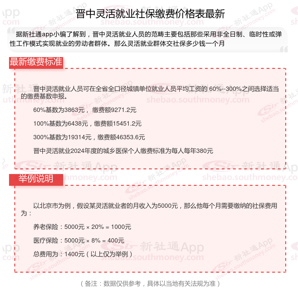 一、2024年晋中灵活就业社保缴费基数、比例最新消息