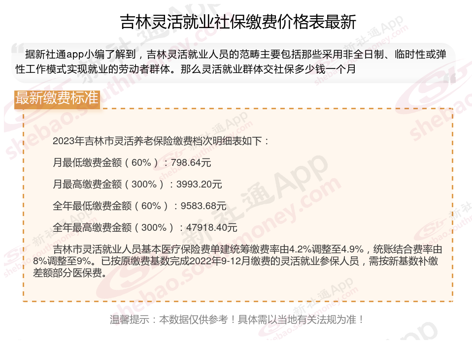 以上就是吉林灵活就业社保缴费的全部内容,数据及内容供参考!希望对你有帮助,欢迎关注新社通解锁更多社保专业资讯。