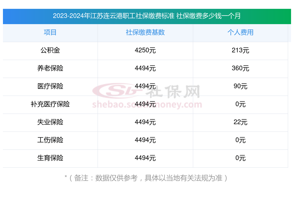 二、江苏连云港职工社保缴费多少钱一个月,2023-2024年职工和公司社保各交多少钱?