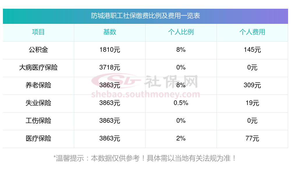 据新社通app小编了解到,2023-2024年防城港社保缴费基数参照为3579.00,防城港社保缴费明细如下:
