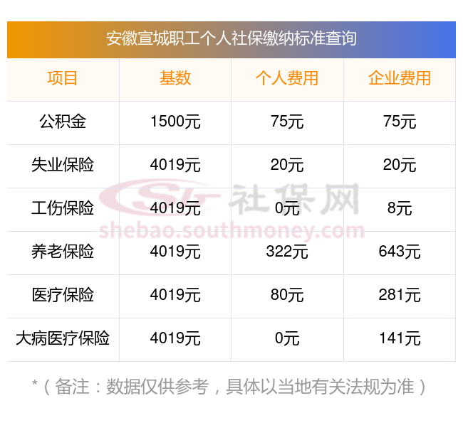 一、安徽宣城职工社保缴费基数是多少钱一个月?职工社保缴纳标准是多少?