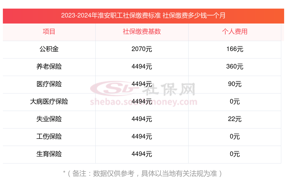 一、淮安职工社保缴费基数是多少钱一个月?职工社保缴纳标准是多少?