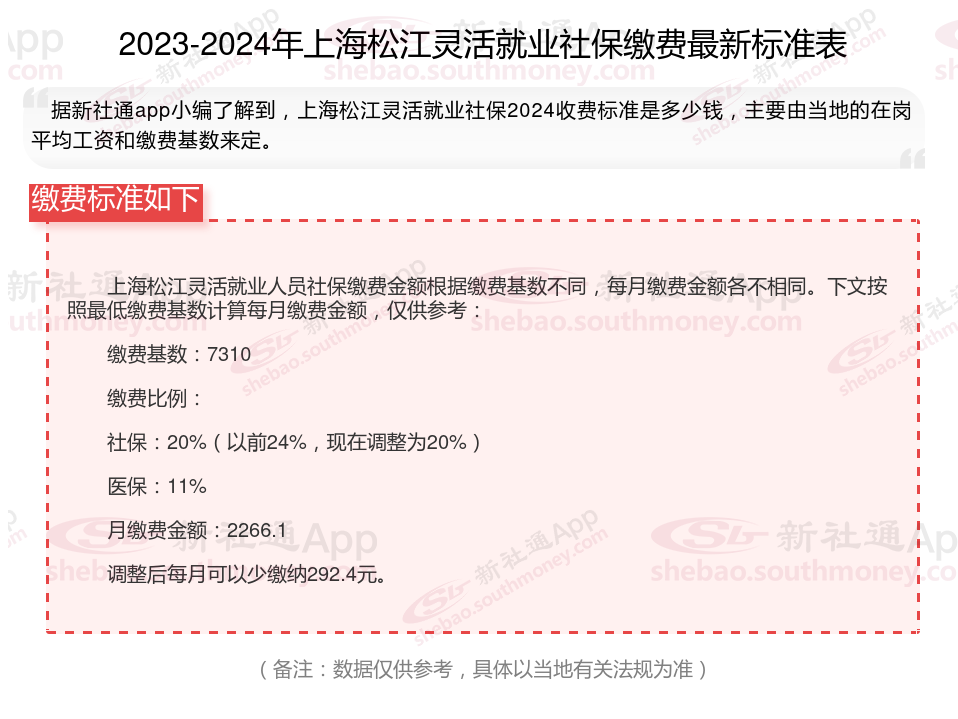 以上就是带来上海松江灵活就业社保缴费标准相关知识,内容供参考,希望对你有帮助,欢迎关注/下载新社通app解锁更多社保专业资讯。