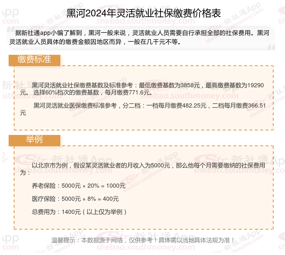 二、黑河2024年灵活就业社保缴费基数、比例最新消息