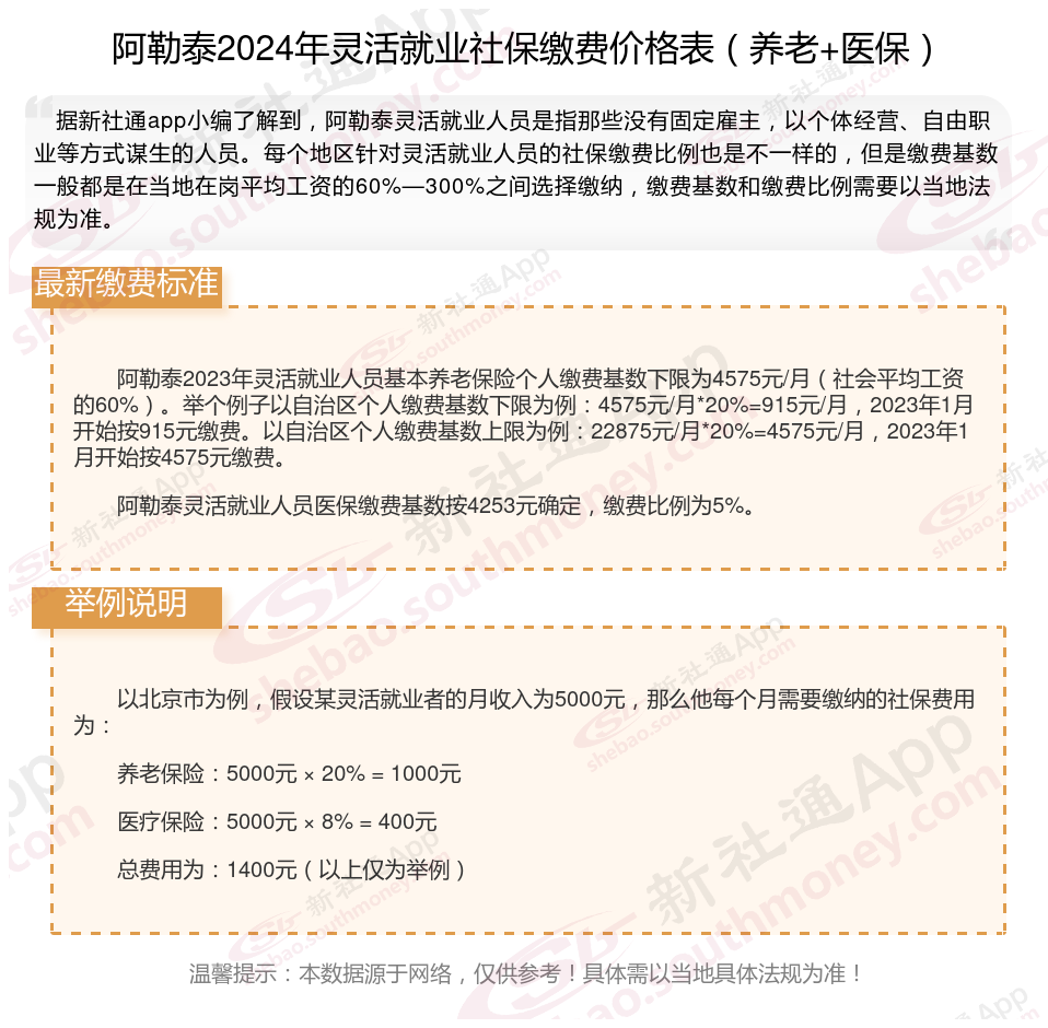 一、2024年阿勒泰灵活就业社保缴费基数、比例最新消息