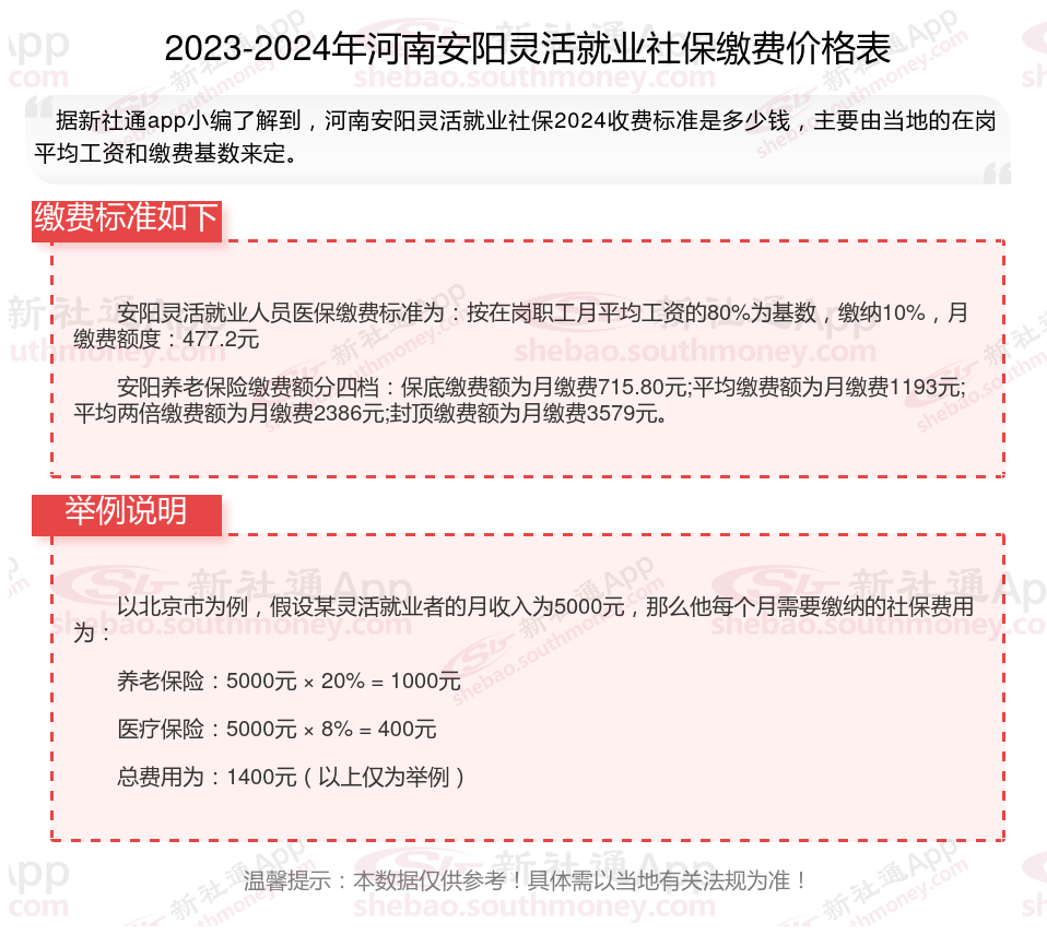 二、河南安阳2024年灵活就业社保缴费基数、比例最新消息