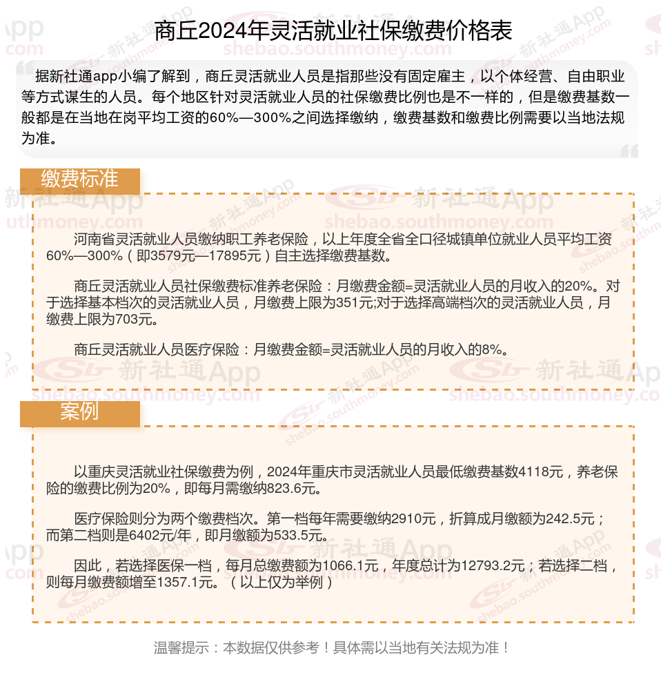 二、商丘2024年灵活就业社保缴费基数、比例最新消息