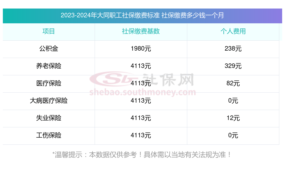 二、大同职工社保缴费多少钱一个月,2023-2024年职工和公司社保各交多少钱?