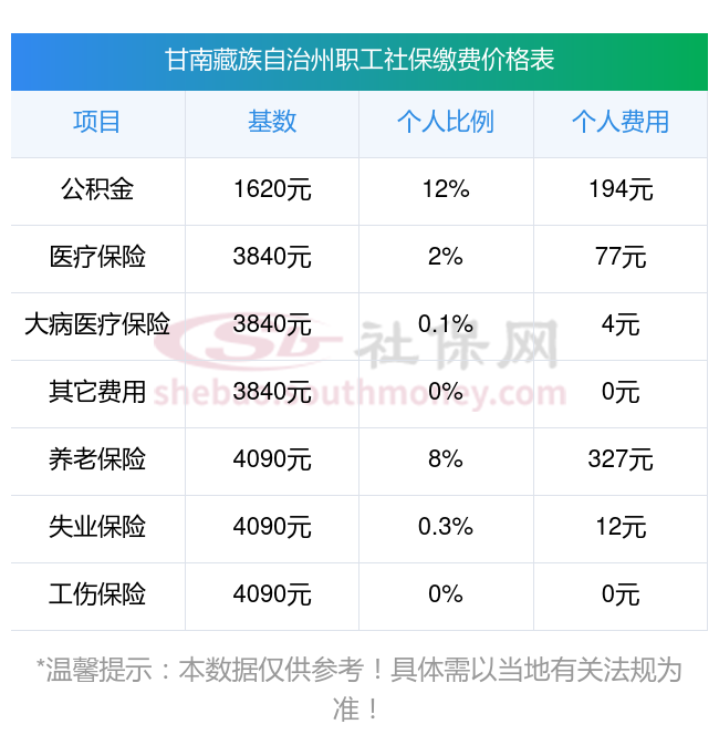 (甘南藏族自治州社保最低一个月要交多少钱)甘南藏族自治州社保费用明细最新如下: