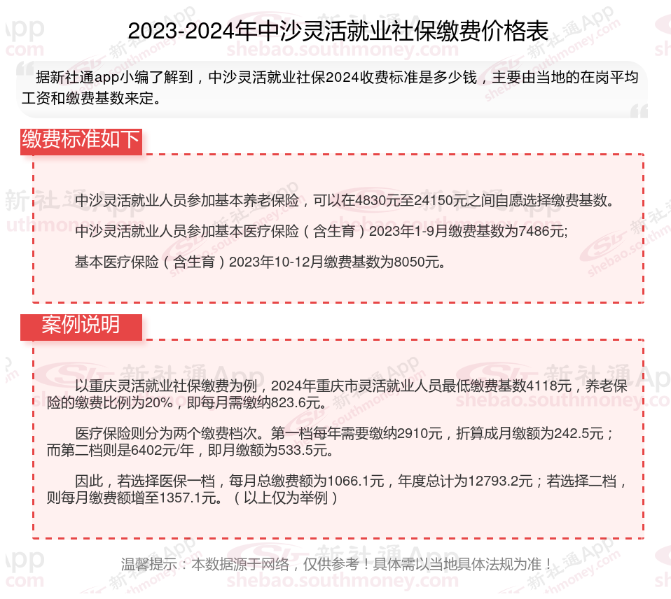 以上就是中沙灵活就业社保缴费的全部内容,数据及内容供参考!希望对你有帮助,欢迎关注新社通app解锁更多社保专业资讯。