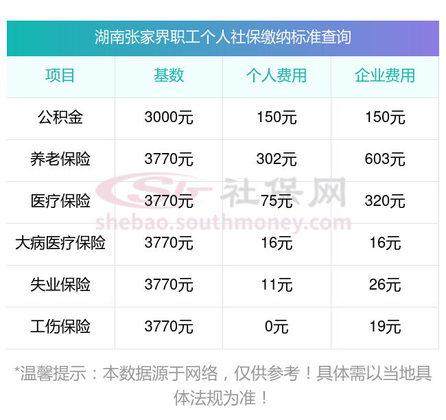 湖南张家界职工社保缴费多少钱?湖南张家界职工社保缴费基数最新参考为:3579.00,具体如下: