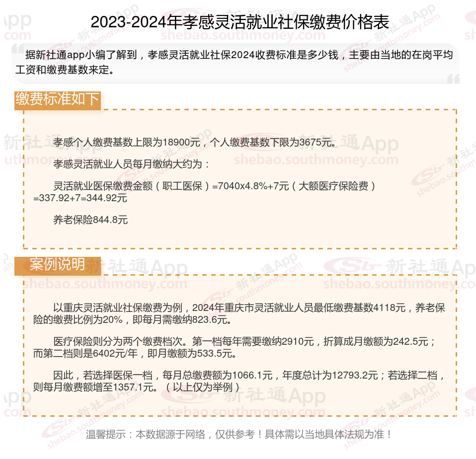 二、2024年孝感灵活就业社保缴费标准表 孝感灵活就业社保多少钱一个月?