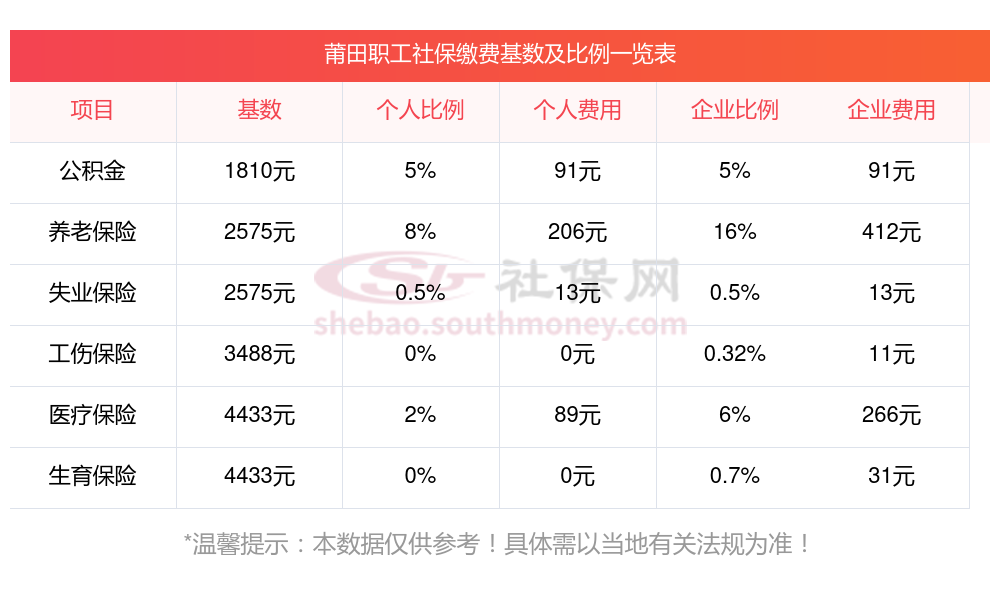 目前该莆田社保缴费基数最新参考为3579.00。(数据仅供参考)