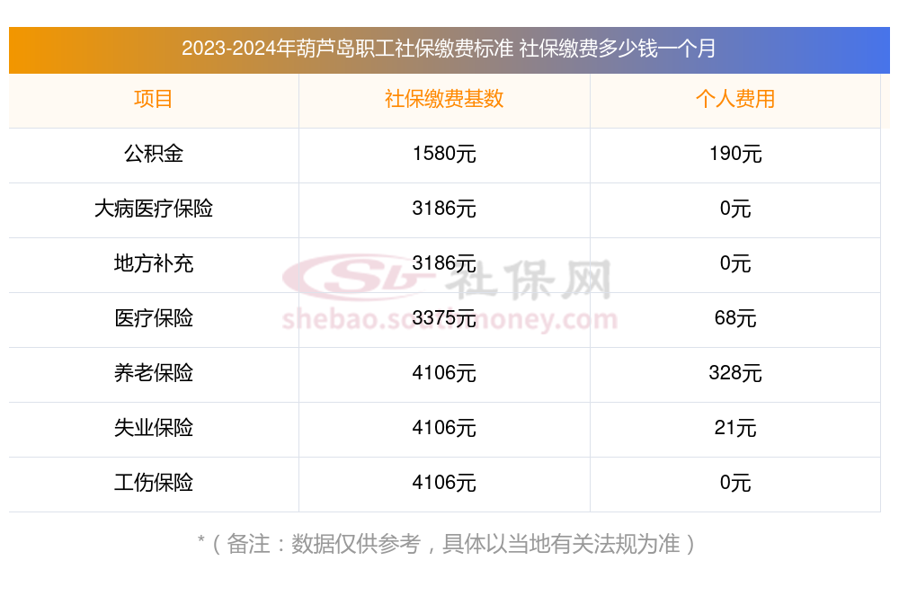 一、据新社通app显示,2023-2024年葫芦岛社保缴费基数最新为3579.00,葫芦岛社保缴费标准如下: