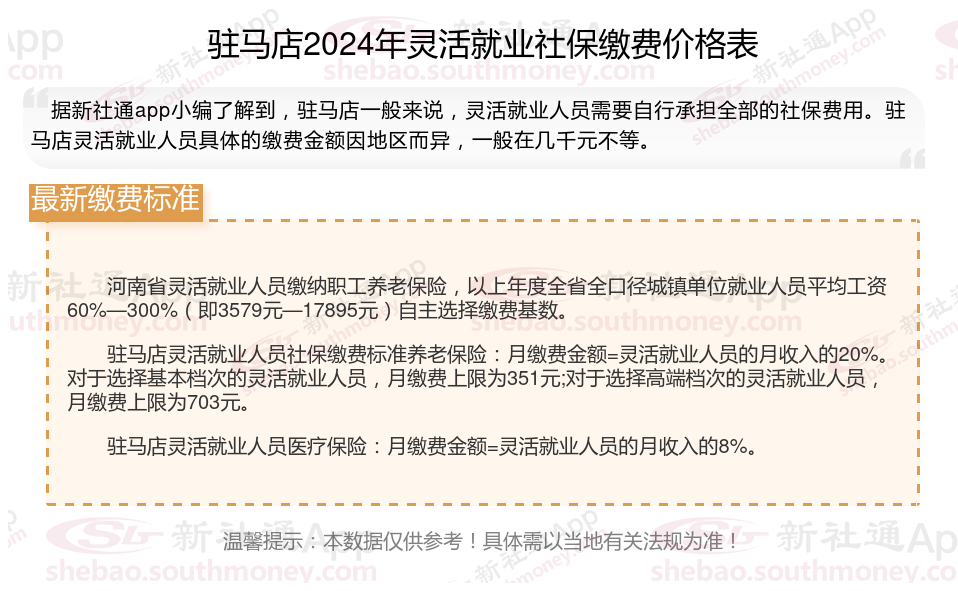 二、驻马店2024年灵活就业社保缴费基数、比例最新消息