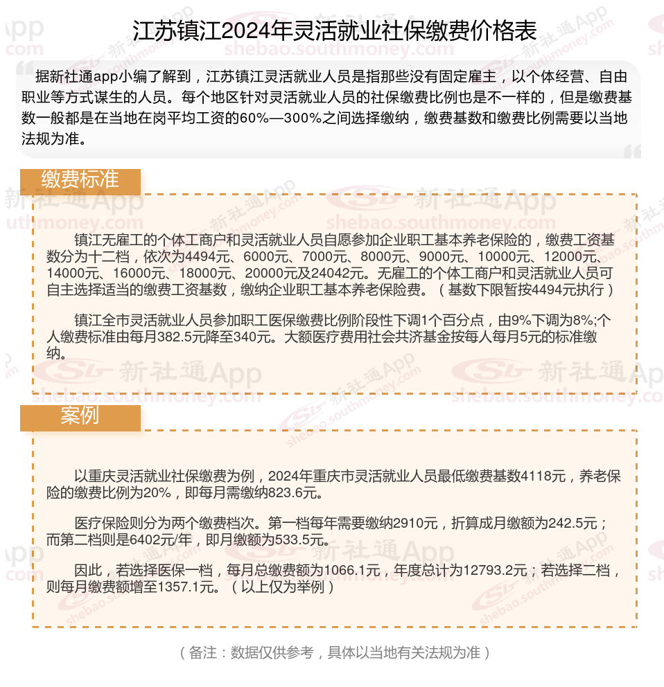 二、江苏镇江2024年灵活就业社保缴费基数、比例最新消息