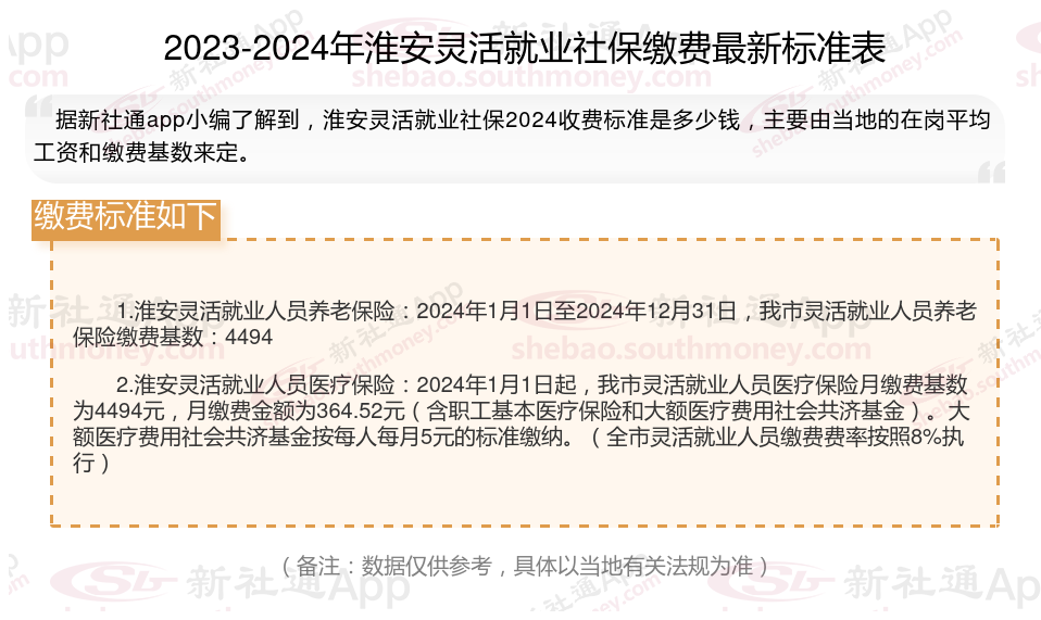 以上就是淮安灵活就业社保缴费的全部内容,数据及内容供参考!希望对你有帮助,欢迎关注新社通解锁更多社保专业资讯。