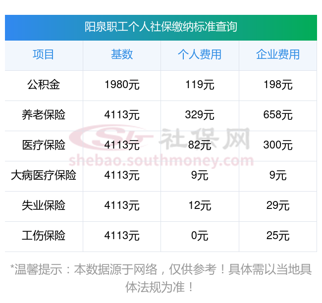 一、据新社通app显示,2023-2024年阳泉社保缴费基数最新为3579.00,阳泉社保缴费标准如下: