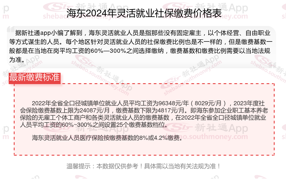 以上就是海东灵活就业社保缴费的全部内容,数据及内容供参考!希望对你有帮助,欢迎关注新社通解锁更多社保专业资讯。