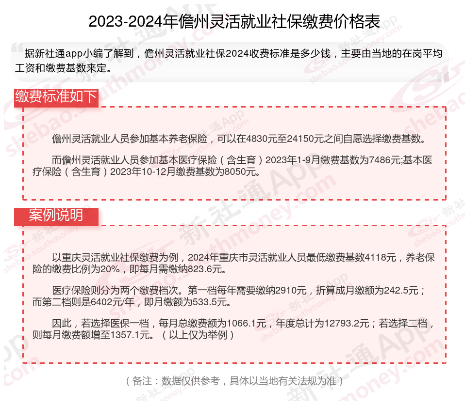 一、2024年儋州灵活就业社保缴费标准表 儋州灵活就业社保多少钱一个月?