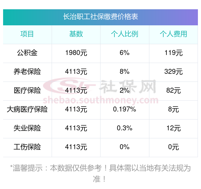 据新社通app显示,长治社保缴费基数2023-2024年标准,(社保最低一个月要交多少钱)长治社保费用如下: