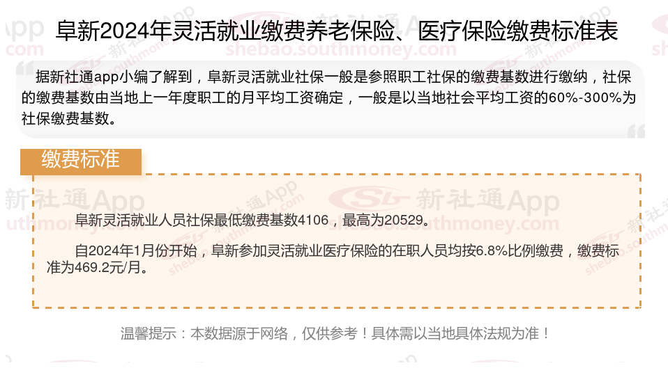 二、阜新2024年灵活就业社保缴费基数及比例最新消息