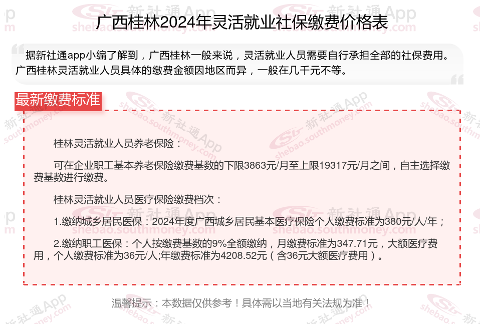 以上就是广西桂林灵活就业社保缴费的全部内容,数据及内容供参考!希望对你有帮助,欢迎关注新社通app解锁更多社保专业资讯。