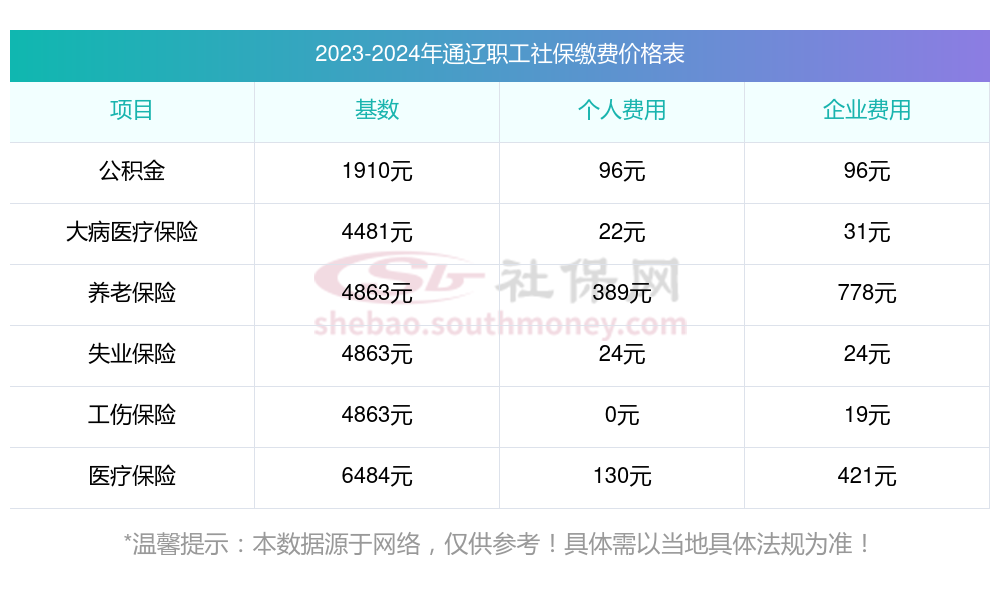 据新社通app小编了解到,2023-2024年通辽社保缴费基数参照为3579.00,通辽社保缴费明细如下: