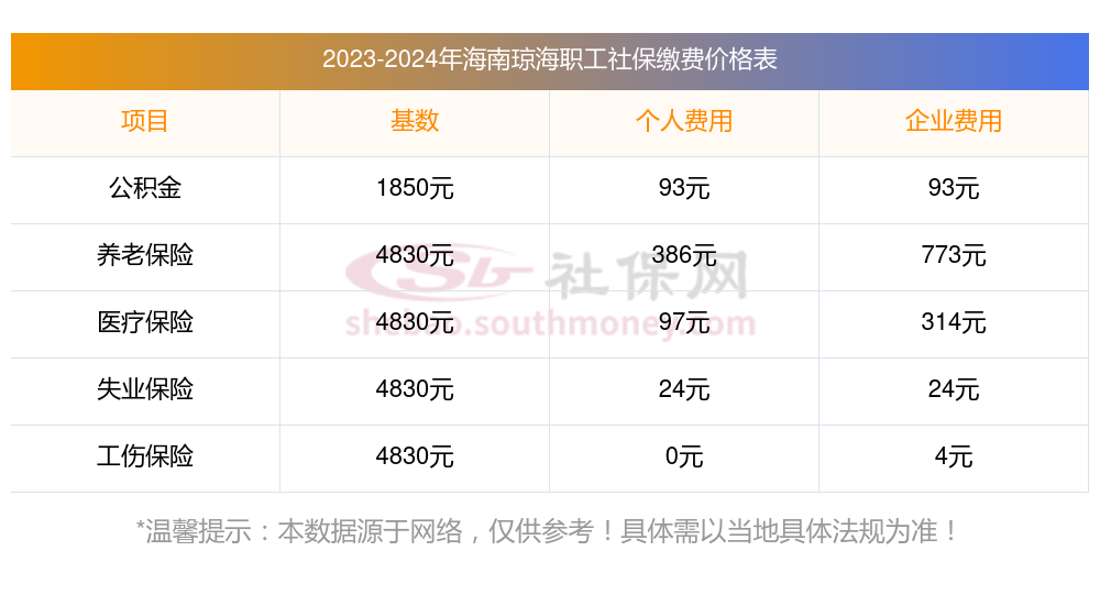二、海南琼海职工社保缴费多少钱一个月,2023-2024年职工和公司社保各交多少钱?