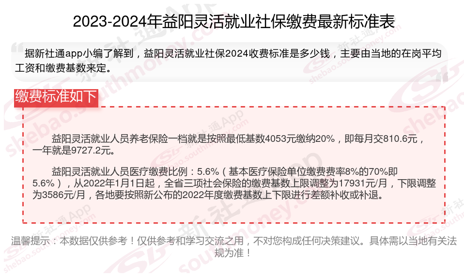 一、2024年益阳灵活就业社保缴费基数、比例最新消息