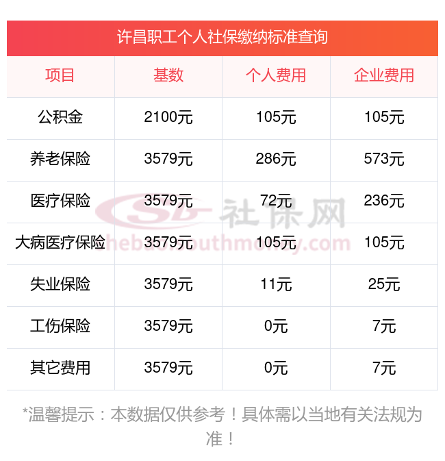 据新社通app显示,许昌社保缴费基数2023-2024年标准,(社保最低一个月要交多少钱)许昌社保费用如下: