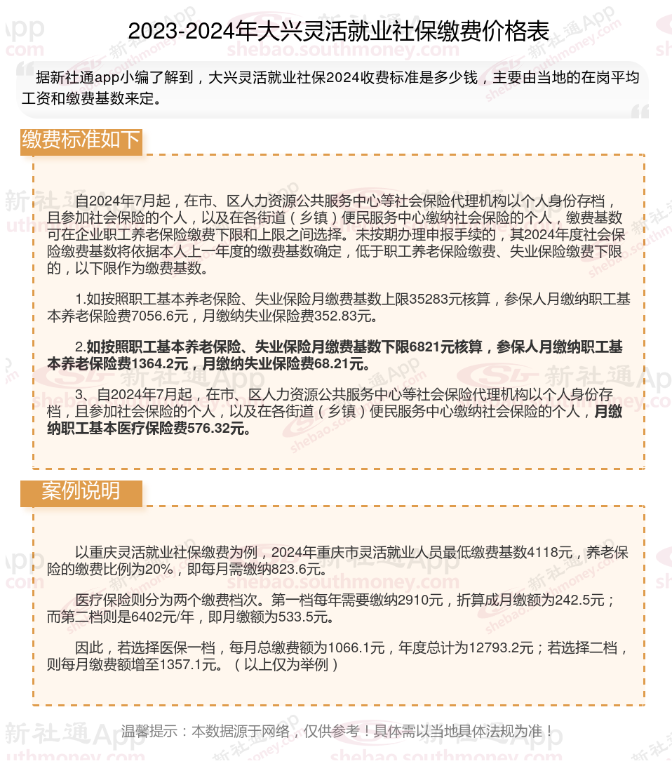 一、2024年大兴灵活就业社保缴费标准表 大兴灵活就业社保多少钱一个月?