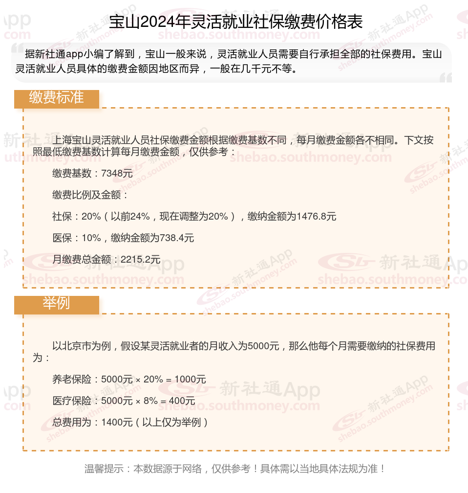 二、宝山2024年灵活就业社保缴费基数及比例最新消息