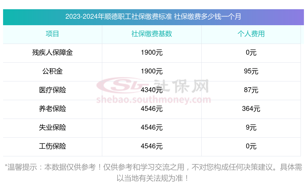 据新社通app小编了解到,2023-2024年顺德社保缴费基数参照为3579.00,顺德社保缴费明细如下: