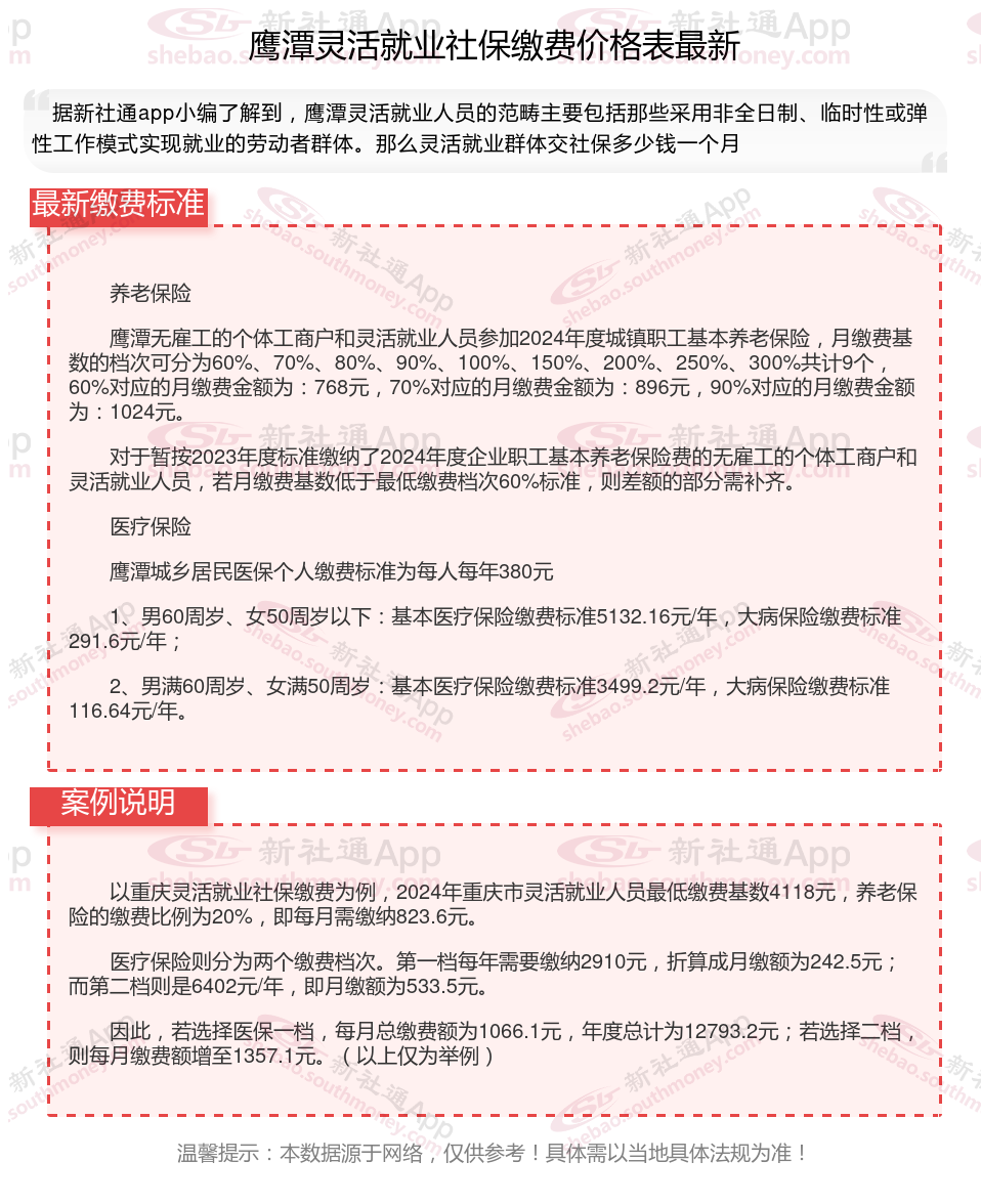 一、2024年鹰潭灵活就业社保缴费标准表 鹰潭灵活就业社保多少钱一个月?