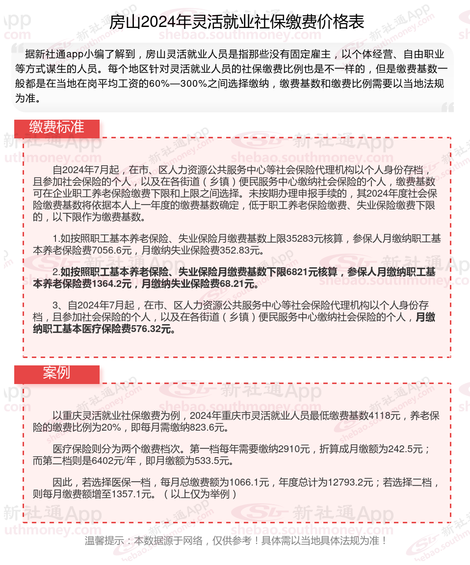 二、房山2024年灵活就业社保缴费基数、比例最新消息