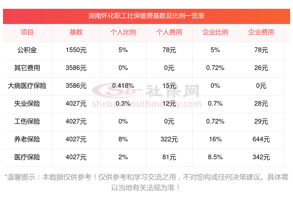 据新社通app显示,湖南怀化社保缴费基数2023-2024年标准,(社保最低一个月要交多少钱)湖南怀化社保费用如下: