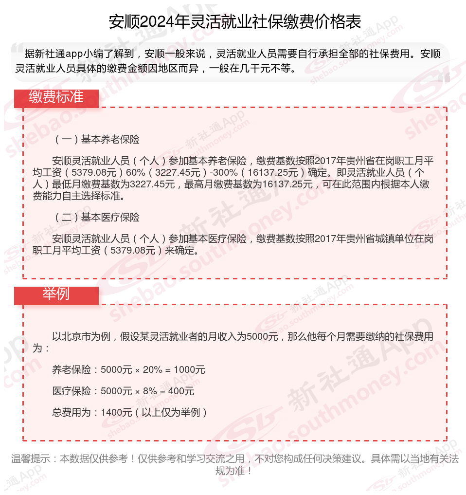 一、2024年安顺灵活就业社保缴费标准表 安顺灵活就业社保多少钱一个月?