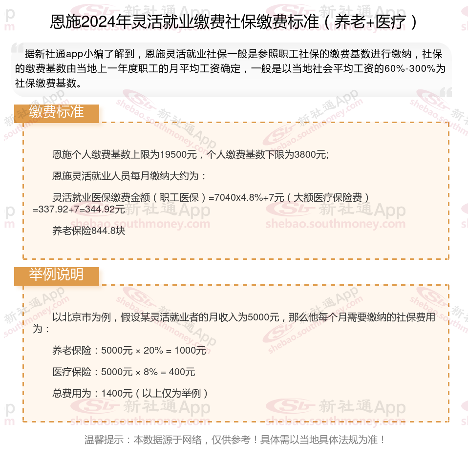 二、恩施2024年灵活就业社保缴费基数、比例最新消息