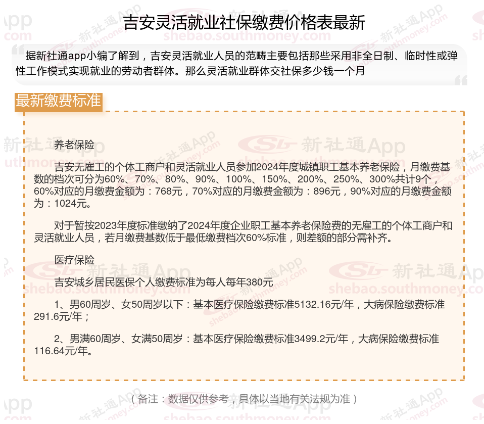 二、2024年吉安灵活就业社保缴费标准表 吉安灵活就业社保多少钱一个月?