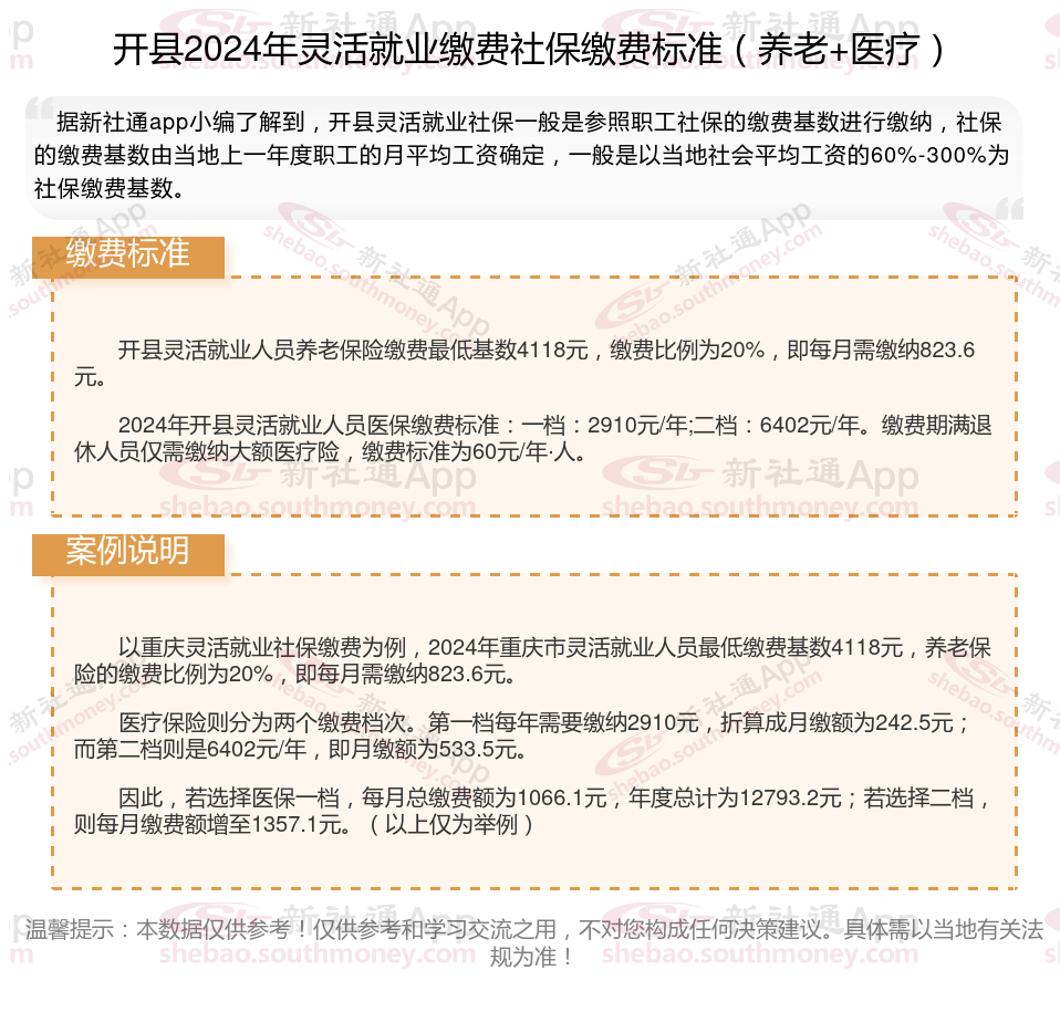 以上就是开县灵活就业社保缴费的全部内容,数据及内容供参考!希望对你有帮助,欢迎关注新社通解锁更多社保专业资讯。