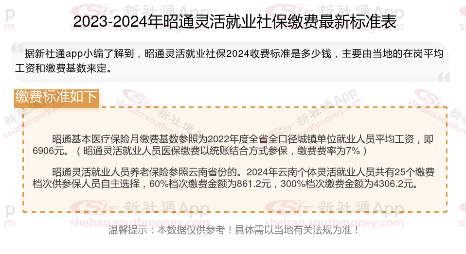 二、昭通2024年灵活就业社保缴费基数、比例最新消息