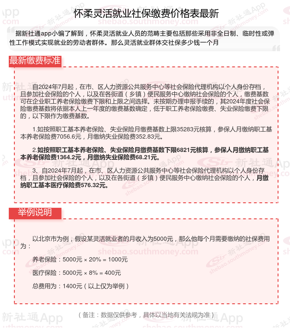 一、2024年怀柔灵活就业社保缴费标准表 怀柔灵活就业社保多少钱一个月?
