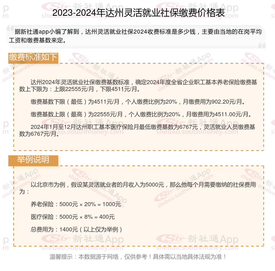 以上就是带来达州灵活就业社保缴费标准相关知识,内容供参考,希望对你有帮助,欢迎关注/下载新社通app解锁更多社保专业资讯。