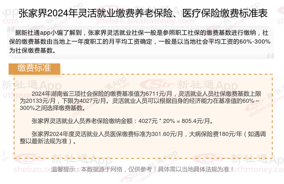 二、张家界2024年灵活就业社保缴费基数、比例最新消息